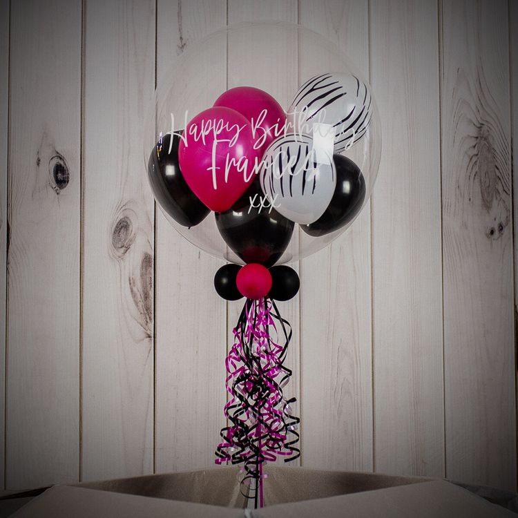 The Wild Nights Balloon Package is perfect for any party animal, featuring a series of vibrant decorations with zebra stripe designs and stand-out colours. It also includes a personalised bubble balloon that you can add a special message to!