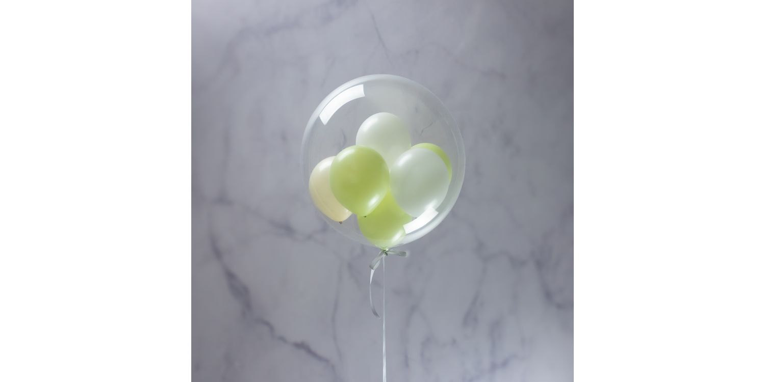 Our Pistachio Breeze balloon-filled bubble balloon is a refreshing pastel mix pistachio green, white & blush sand, complemented by a crystal clear outer balloon. Perfect for chic birthdays, summer events and evening weddings, Pistachio Breeze is a firm favourite for that cool, understated style and the perfect statement piece for any venue.