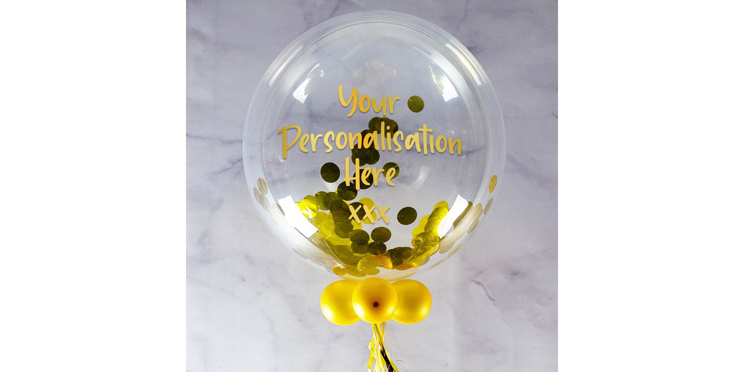 Add a golden touch to your latest party with the Personalised Gold Confetti Bubble Balloon from Party On. Filled with luxurious, all gold metallic confetti, this balloon will give any themed event, Christmas party or New Year's Eve celebration a magical twist, instantly. You can also customise your personalised balloon with a special message or wording of your choice.