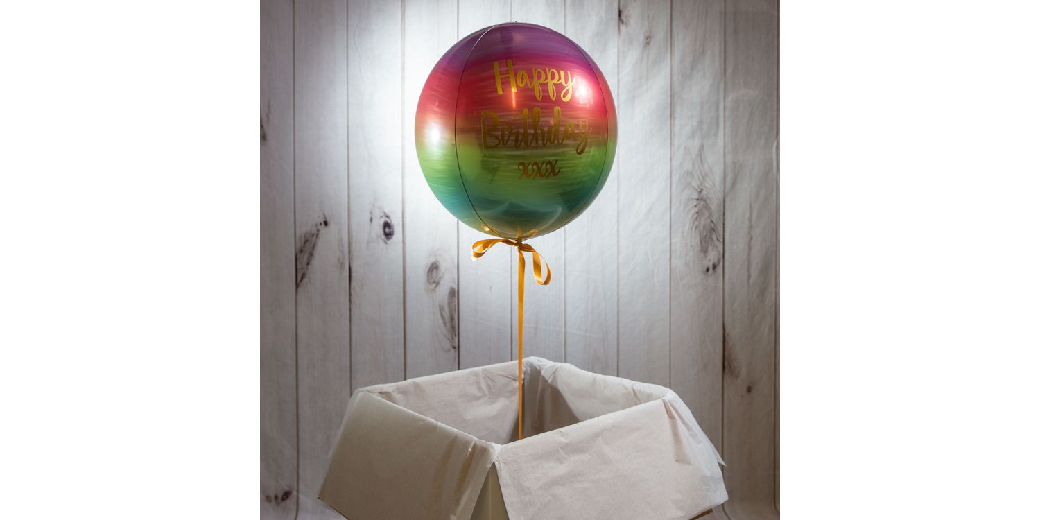 Add brushstrokes of gorgeous colours to your next party or special occasion with this Personalised Rainbow Orb Balloon. Great for celebrating birthdays or marking a special occasion or milestone, this balloon comes with a series of unique customisation options to really make it your own! This lovely balloon is finished off with a simple ribbon and will pop out of the box to surprise a loved one.