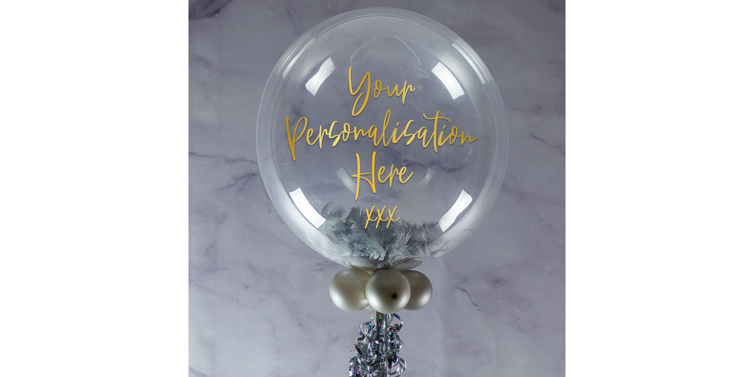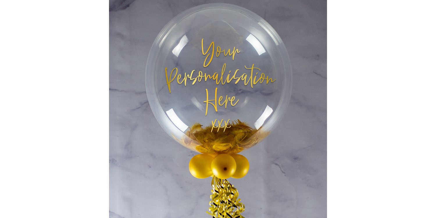 Give someone a gift to remember on their engagement with this personalised bubble balloon, with a range of coloured soft feathers to fill the inside. You can also add a message to the outside, or use our recommended message of 'Congratulations On Your Engagement xxx'.