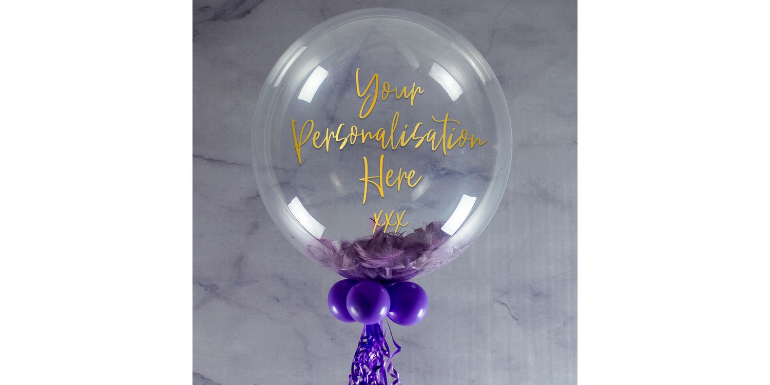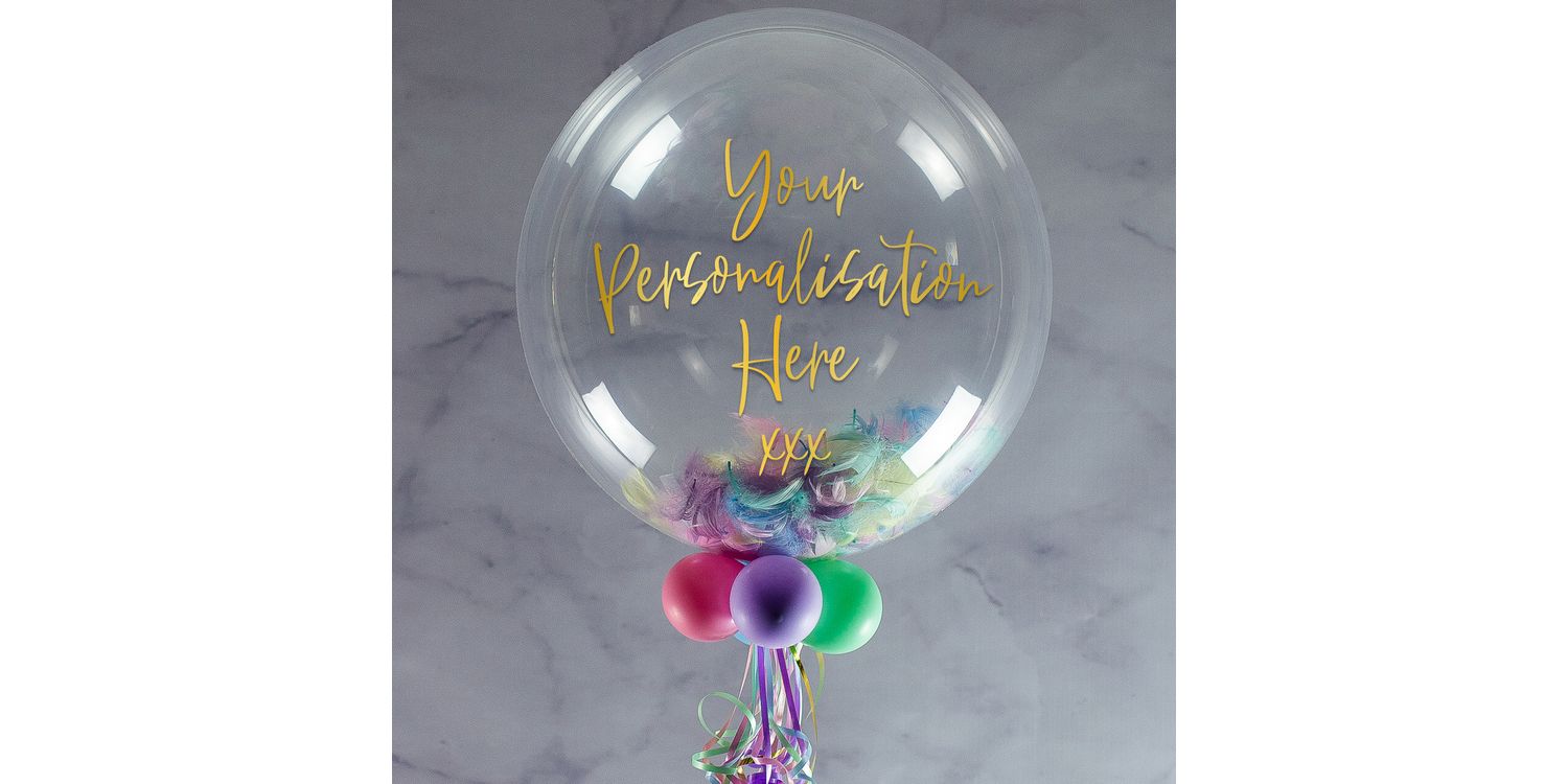 A beautiful bespoke balloon to give as a birthday gift, filled with the colour feathers of your choice. The default message reads 'Happy Birthday xxx' but you can write any message, with a choice of fonts.