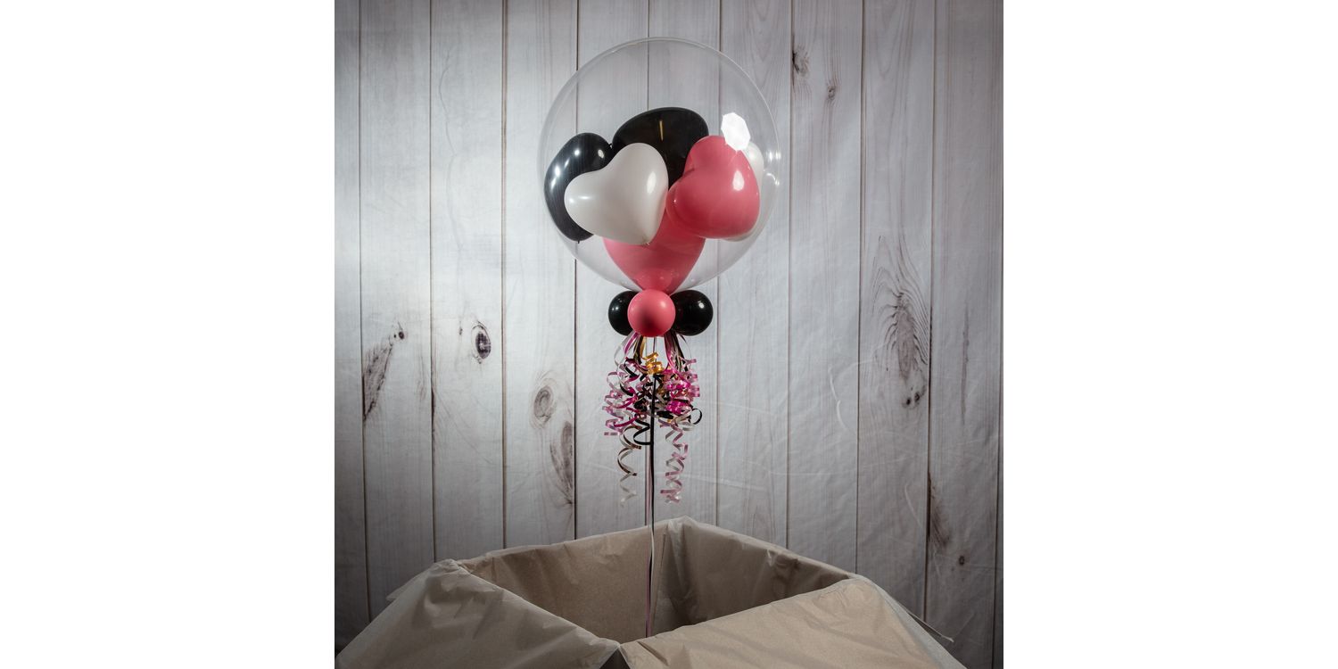 If your special someone is mad about Minnie Mouse and everything Disney, our personalised bubble balloon will be a lovely gift for Valentine's Day. Inside our 20" clear outer balloon we inflate Minnie-Mouse themed heart-shaped balloons in pink, black and white, creating a beautiful effect.