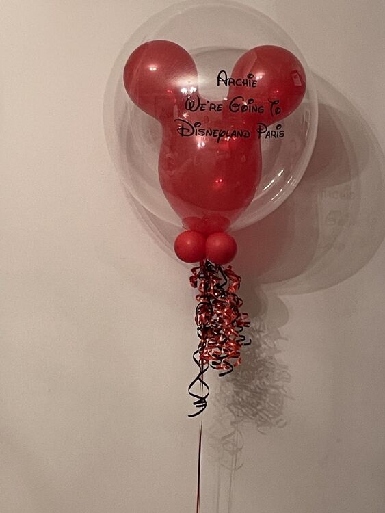The inflated latex balloon we add inside your bubble balloon is the same one they use in Disneyland, making it a truly special treat. Then add your personalised message on the outside for a surprise they'll never forget.